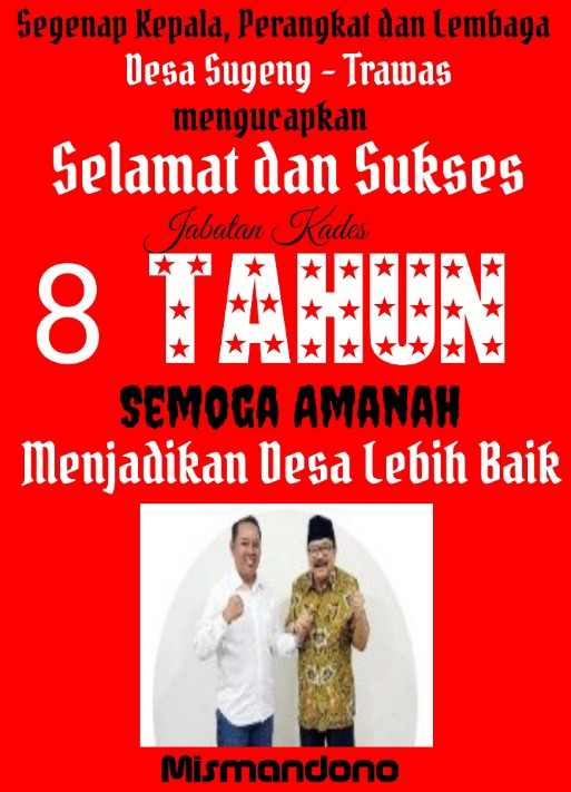 Mojokerto, nets9.com – Mengucapkan, Selamat dan Sukses atas Tambahan Jabatan Kades Menjadi 8 Tahun. Semoga Amanah dan Menjadikan Desa Lebih Baik.