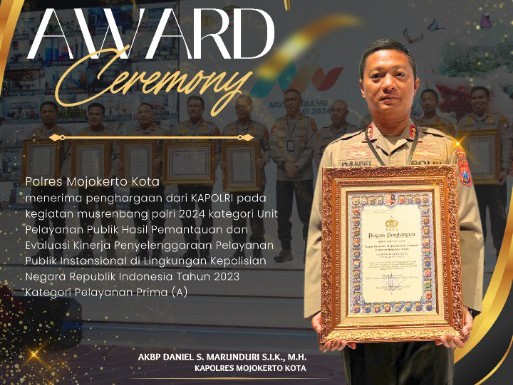 Kapolri Beri Penghargaan Polres Mojokerto Kota Atas Pelayanan Prima
