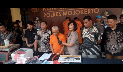 Kasat Reskrim Polres Mojokerto AKP Nova Indra Pratama mengatakan,”Pada hari Sabtu tanggal 15 Juni 2024 sekira pukul 09.30 Wib, Seseorang yang diduga memiliki senjata api rakitan kemudian petugas melakukan serangkaian penyelidikan pada hari Rabu pukul 15.30 Wib, dipinggir jalan Desa Kunjorowesi, Kabupaten Ngoro petugas berhasil mengamankan pelaku tersebut yang memiliki dan menyimpan, memasukkan, membawa persediaan yang ada padanya atau mempunyai dalam miliknya senjata api,amunisi atau bahan peledak diduga yang dilakukan oleh pelaku AS (55), Pekerjaan swasta, alamat Tulangan, Kabupaten Sidoarjo,” Ujarnya saat pers rilis bersama awak media di Mapolres Mojokerto, Jumat (26/7/24) siang.