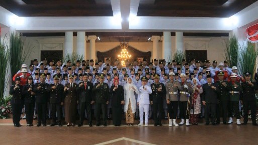 Bupati Mojokerto, Ikfina Fahmawati juga tampak menghadiri giat upacara penutup di penghujung hari 17 Agustus itu, dengan didampingi para undangan lain yang berasal dari Jajaran Forkopimda Kabupaten Mojokerto.