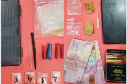 Pada saat dilakukan penggeledahan, ditemukan 1 sedotan plastic/skrop di dalam bungkus rokok, uang Rp 300 ribu, 1 Handphone serta sabu-sabu dengan berat kotor 0,53 gram dalam kemasan dua plastik klip.