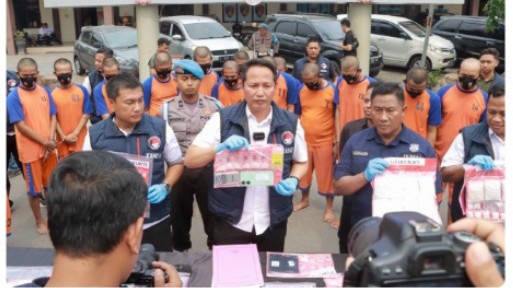 Dari jumlah itu, petugas menyita berbagai barang bukti diantaranya, 55,53 gram sabu, pil koplo jenis Pil Dobel L 29 ribu butir, 29 Handphone dan uang tunai Rp 3.702.000,-.
