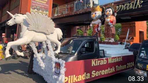 Sosialisasi Pilkada Serentak 2024, Maskot “Si Jali” dan “Kerto- Kerti” Dikirab Keliling Kota Mojokerto