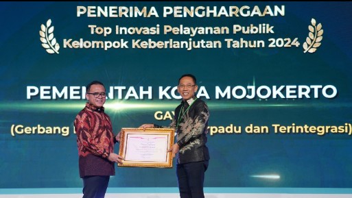 Kota Mojokerto, nets9.com – Pemerintah Kota Mojokerto kembali meraih penghargaan dari Kementerian Pendayagunaan Aparatur Negara dan Reformasi Birokrasi (PANRB). Kali ini penghargaan yang diraih adalah top inovasi pelayanan publik kategori Pemantauan Keberlanjutan dan Replikasi Inovasi Pelayanan Publik (PKRI) kelompok Instansi Keberlanjutan. Penghargaan tersebut diserahkan oleh Menpan RB Azwar Anas dalam Gebyar Pelayanan Prima Tahun 2024 yang berlangsung di Sheraton Grand Jakarta Gandaria City Hotel, Jakarta Selatan pada Selasa (8/10).