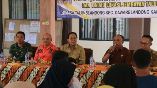 Setelah PJs Bupati Akhmad Jazuli, bersama BPBD dan perangkat Desa Talun Blandong, kemudian meninjau lokasi pembangunan jembatan untuk melihat langsung situasi dan kondisi jembatan Talun Brak. (N9)