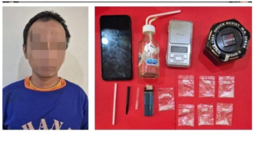 Selain itu, 1 timbangan digital, 1 alat hisap sabu-sabu atau bong, 1 korek api gas, 1 pipet kaca, 1 serok plastik, dan 1 ponsel.