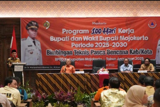 Mojokerto, nets9.com – Bupati Mojokerto Muhammad Al Barra menunjukkan keseriusan kepemimpinannya melalui Program 100 hari Kerja Bupati dan Wakil Bupati Mojokerto. Kali ini untuk realisasi program tersebut Gus Barra menggelar sekaligus membuka giat Bimbingan Teknis Pasca Bencana pada Selasa (18/3/2025)