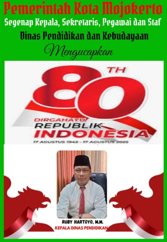 Mata Nets9 Pemerintah Kota Mojokerto Segenap Kepala, Sekretaris, Pegawai dan Staf Dinas Pendidikan dan Kebudayaan 10 Agustus 2025 Redaksi Mengucapkan,Related posts: Segenap Kepala, Sekretaris, Pegawai dan Staf, Sekolah Menengah Pertama Negeri 1 Mojoanyar – Mojokerto Ratusan Murid Baru SMK Negeri 3 Madiun Ikuti Upacara Pembukaan MPLS Siswa Baru Se- Kota Mojokerto Dapat Perlengkapan Sekolah Gratis. Dispendik Kabupaten Mojokerto Kucurkan Miliaran Rupiah Untuk Rehabilitasi dan Pembangunan RKB Dinas Pendidikan Propinsi Jawa Timur. Segenap Kepala Sekolah, Guru, Staf dan Pegawai. Pemerintah Kota Mojokerto Segenap Kepala, Sekretaris, Pegawai dan Staf Dinas Pendidikan dan Kebudayaan